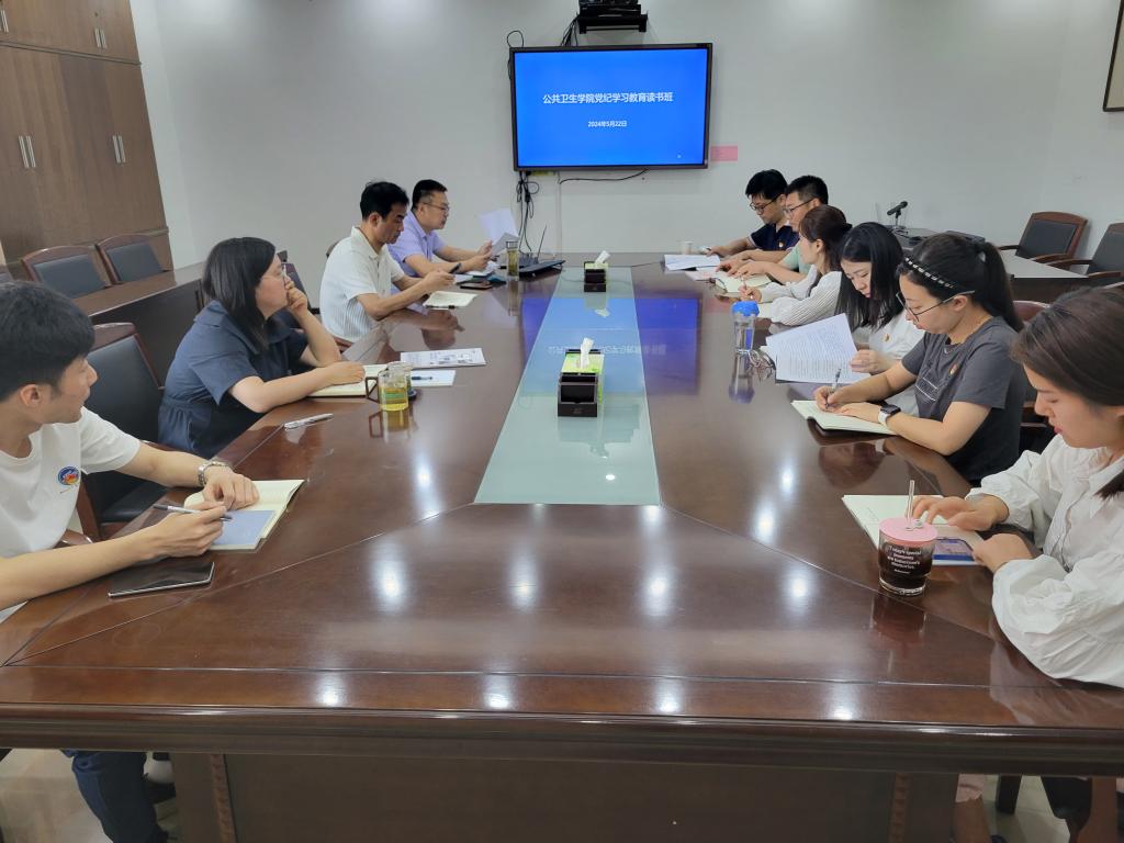 为扎实推进党纪学习教育深入开展,引导党员干部进一步学纪、知纪、明纪、守纪,5月22日,公共卫生学院在明德楼307会议室举办党纪学习教育读书班开班仪式暨党委理论学习中心组学习(扩大)会。学院领导班子成员、各党支部书记、辅导员参加了学习,会议由院党委书记李颖主持。