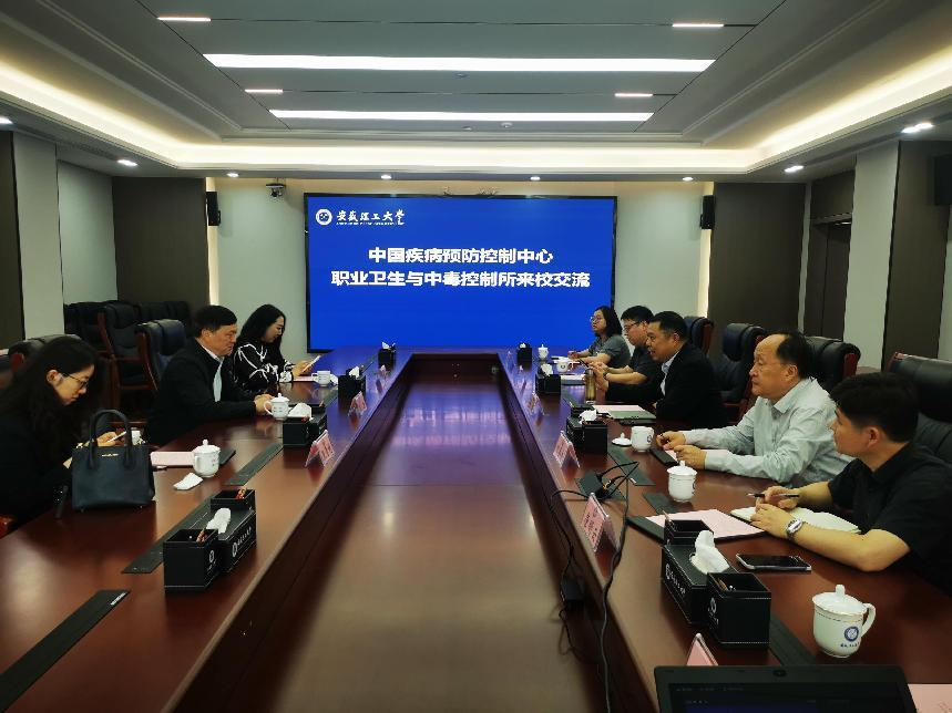 5月7日下午,中国疾病预防控制中心职业卫生与中毒控制所所长孙新一行来校交流,座谈会在学校213会议室举行,校党委常委、副校长鲁超出席会议。