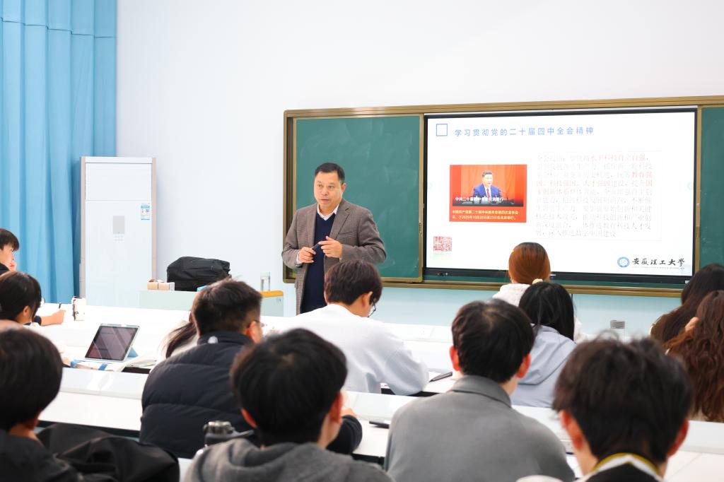 11月14日下午,校党委常委、副校长鲁超在公共卫生学院A305教室宣讲党的二十届四中全会精神。公共卫生学院2025级研究生40余人参加宣讲会。
