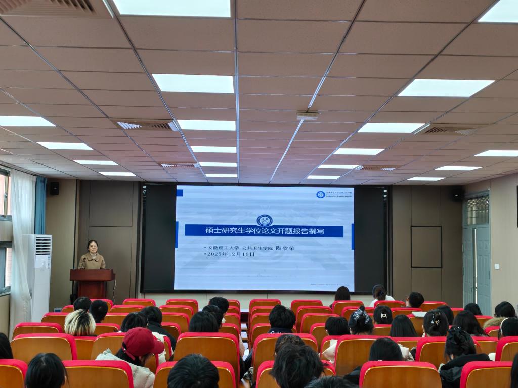 为帮助研究生更好地完成学位论文开题和规划科研学习生活,公共卫生学院于2025年12月19日下午组织了“研究生开题与学习经验交流会”。本次活动邀请到学院资深教授以及三位优秀高年级研究生代表,围绕开题报告撰写与研究生成长主题展开分享,学院2025级全体研究生参加了此次交流会。