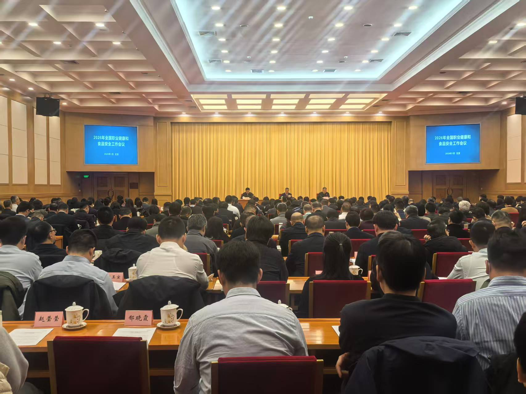 1月28日,国家卫生健康委在北京召开2026年全国职业健康和食品安全工作会议。国家卫生健康委党组成员、副主任、国家疾病预防控制局党组书记、局长沈洪兵院士出席会议并讲话。国家卫生健康委职业健康司司长段勇,全国各省、自治区、直辖市及新疆生产建设兵团卫生健康委,中国国家铁路集团有限公司,有关中央企业职业健康负责同志,职业健康“1+3+N”战略合作单位负责同志参加会议。校党委常委、副校长鲁超参加会议。会议由国家卫生健康委食品司司长田建新主持。