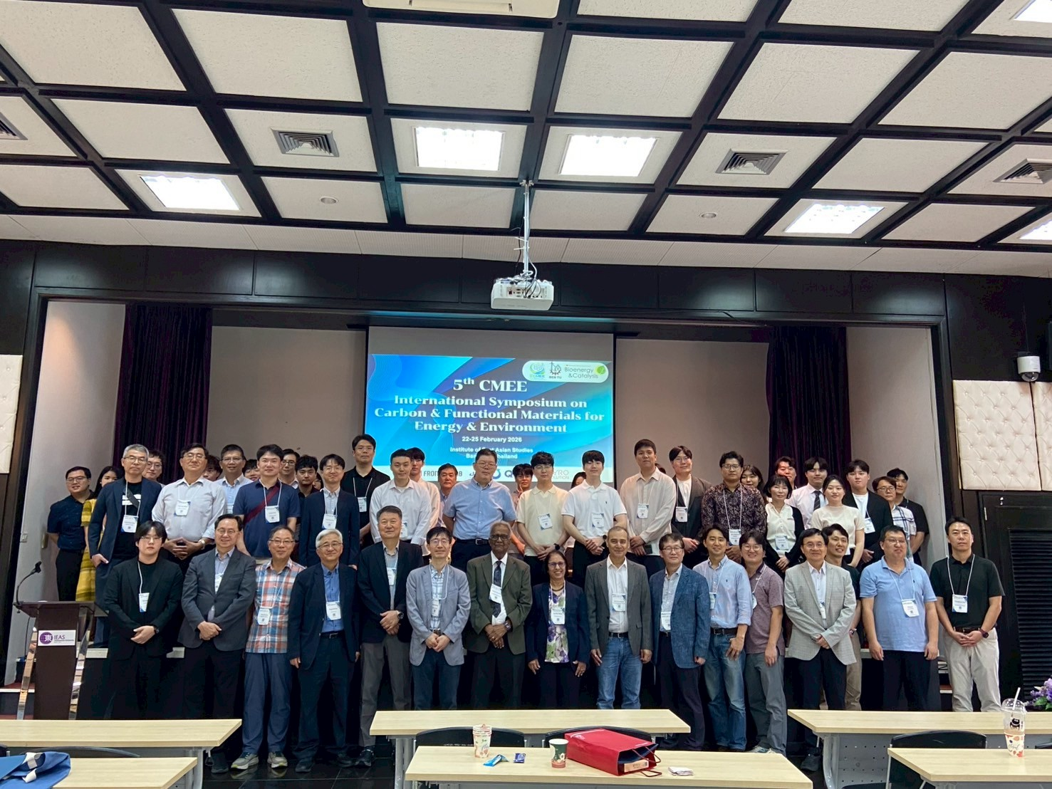 2026年2月22日至25日,第五届国际碳与功能材料在能源与环境领域应用研讨会(5th International Symposium on Carbon & Functional Materials for Energy & Environment, 5th CMEE)在泰国法政大学兰实校区(Thammasat University, Rangsit Campus)东亚研究所举办。本届研讨会围绕环境安全卫工程、废弃物能源化、生物过程与生物资源工程、可再生能源、碳与功能材料、生物高分子以及工程教育等议题展开,重点关注能源转型、公共卫生环境治理与材料创新交叉融合背景下的前沿进展,为国际学术交流与跨领域合作搭建了重要平台。会议共安排137场学术报告,其中口头报告46场,海外学者口头报告26场,包括首尔市立大学Jai-Young Lee教授、Young-Kwon Park教授,汉阳大学Eilhann E. Kwon教授、Byonghun Jeon教授,韩国生产技术研究院Man Sig Lee博士,以及泰国法政大学Chanatip Samart教授等。