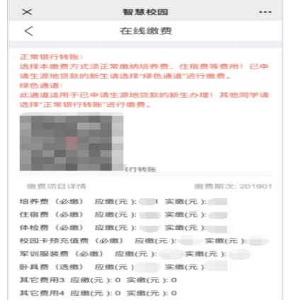 其一是“银行转账”,正常缴费的同学,请选择此方式。