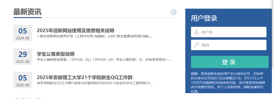1.登录迎新网站:http://yx.aust.edu.cn/stusv-estudent-main/