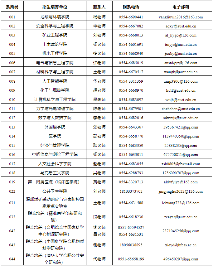 邮编:232001;联系人:徐老师、汪老师;联系电话:0554-6668749;