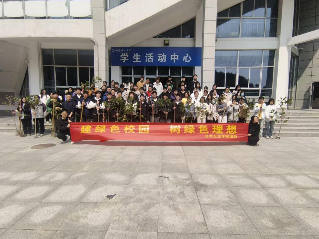 为深入学习习近平生态文明思想,增强学院师生的环保意识,公共卫生学院于3月12日在校园内举办了植树活动。本次活动以“建绿色校园,树绿色理想”为主题,吸引了广大同学主动参与,共同为校园增添新绿。