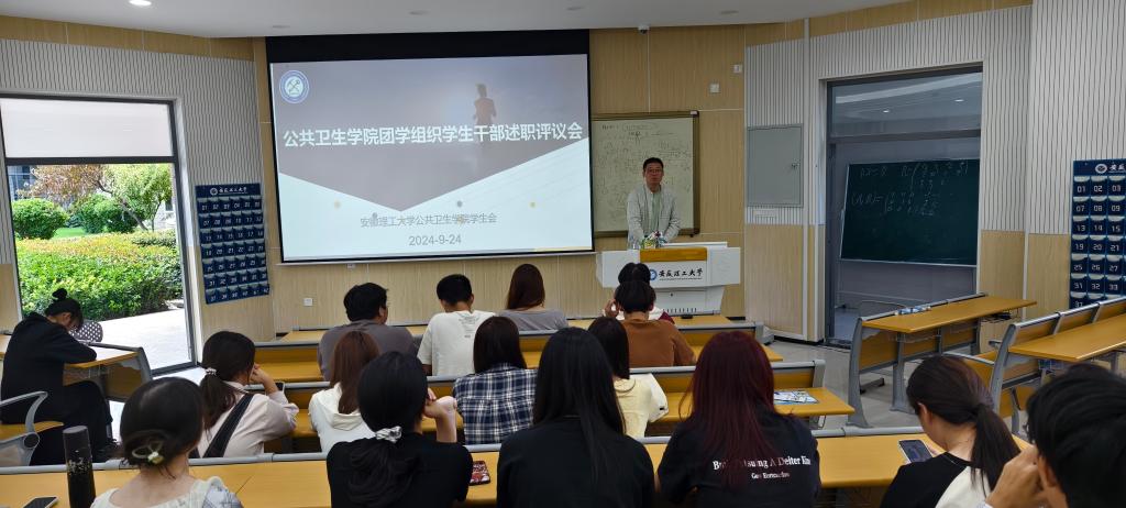 为全面加强团学组织学生干部队伍建设,健全完善学生干部选拔、考核、培养、激励退出机制,锻造一支信念坚定、品学兼优、朝气蓬勃、心系同学的学生干部队伍,9月24日下午,公共卫生学院学生会在耕心楼101教室开展2023—2024学年学生干部述职评议活动,学院团委负责人、学生会主要负责人及学生代表参加。