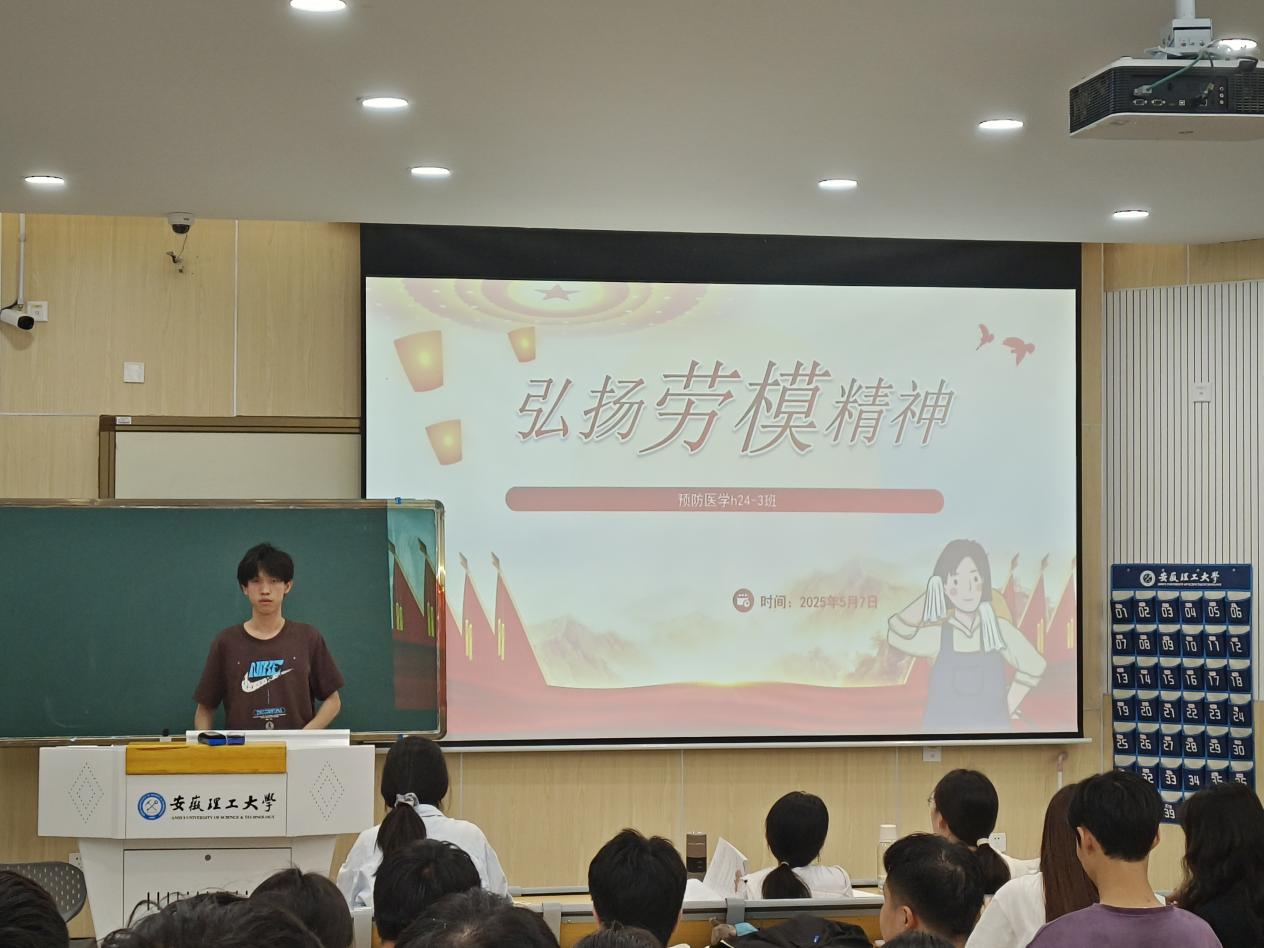 1.劳模精神宣讲:在各班主题班会中,学院班委分享了医疗卫生领域劳动模范的奋斗故事。例如,徐安平扎根基层四十年,推动医疗水平提升;顾春娥在抗击“非典”和新冠肺炎疫情中克服自身困难,践行初心使命;唐简深耕感染病学科,降低肝功能衰竭患者死亡率。这些劳模故事激发了学生们向榜样学习的热情,深化了他们对劳动价值的认同。