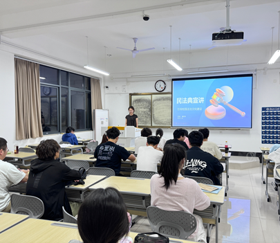 紧接着,宣讲人深入阐述了民法典的重要意义。民法典是新中国成立以来第一部以“法典”命名的法律,它涵盖了社会生活的方方面面,体现了对人民权利的充分尊重和保护。对于大学生而言,学习民法典不仅有助于增强自身的法律意识和法治素养,还能在未来的工作和生活中更好地运用法律武器维护自身合法权益,同时也有助于营造和谐有序的校园环境和社会氛围。