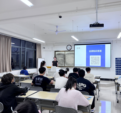 活动最后,一场紧张激烈的法律知识竞答将现场气氛推向高潮。此次竞答题目涵盖宪法、民法典等相关法律知识,题型丰富多样,包括选择题、判断题和简答题。同学们凭借在活动中积累的知识,沉着冷静地思考、答题,展现出了扎实的法律知识储备和积极向上的精神风貌。通过知识竞答,同学们不仅检测了自己对法律知识的掌握程度,也发现了自身存在的不足,明确了今后学习和努力的方向。