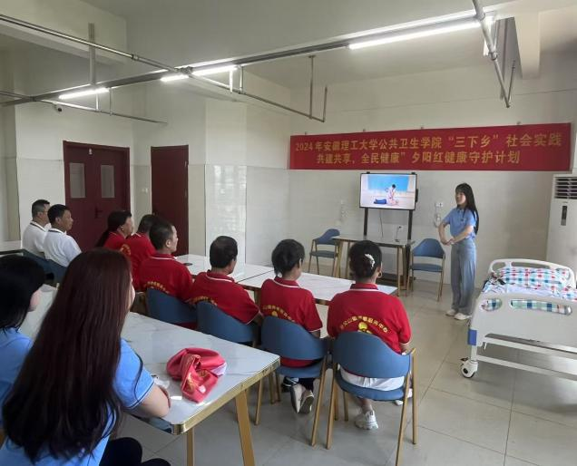 (图为2024年7月夕阳红健康守护计划队在庐江县养老服务中心开展急救知识培训与体检)