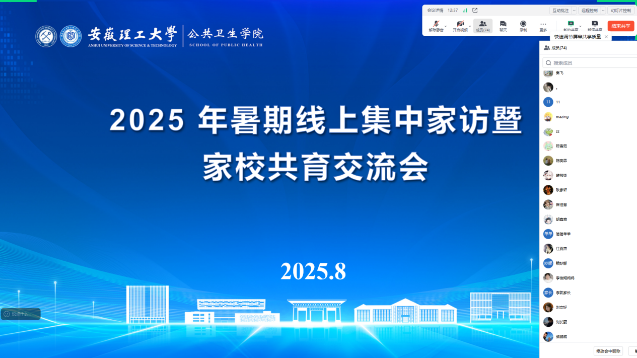 学院于8月25日,按年级分别进行线上家访。学院团委副书记、2023级辅导员秦飞,2024级辅导员薛敏围绕学校教育管理、奖助评定、心理健康、参军入伍等政策进行详细解读,并向家长详细反馈学生在校学习、生活等表现,同步倾听家长对学生的成长期望。2023级国家奖学金获得者、国家励志奖学金获得者代表及在中国国际大学生创新大赛(2025)中获省级金奖的优秀学生分别分享了大学期间成长心路历程,以朋辈榜样力量激发学生学习动力。同时,秦飞向家长详细介绍了学校在“双一流”建设中的丰硕成果以及学院2025年的重点工作部署,激励学生专注专业学习,全面提升综合素质,增强成长自信。