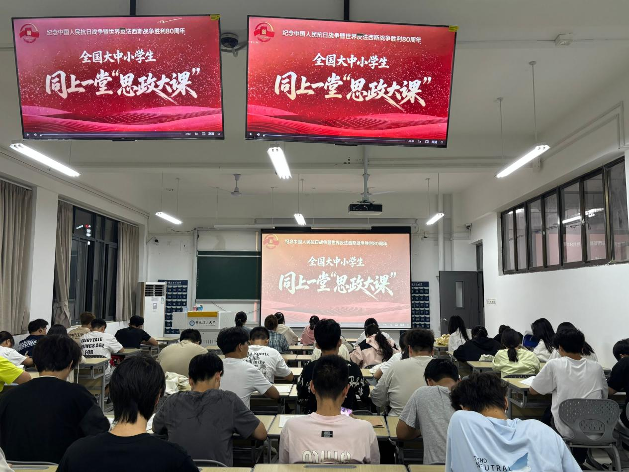 9月18日,学院组织全体学生观看“弘扬伟大抗战精神 做光荣自豪中国人——纪念中国人民抗日战争暨世界反法西斯战争胜利80周年”思政大课。授课专家以鲜活的历史案例为引,以珍贵的影像资料为证,深入解读抗战精神的时代内涵,引导学生从烽火岁月中汲取奋进力量,坚定“强国有我、请党放心”的理想信念。