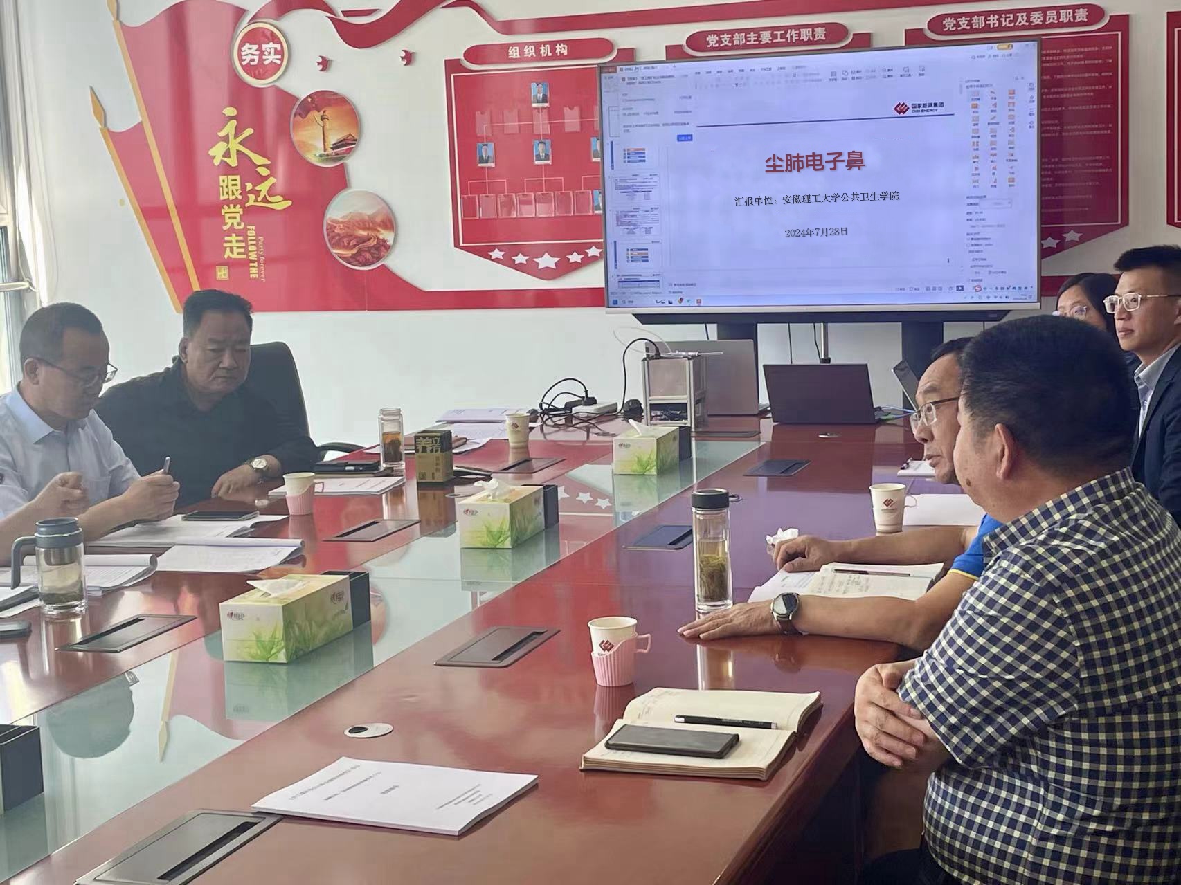 2024年7月28日,安徽理工大学公共卫生学院副院长穆敏、朱锋仁老师、王佳老师,赴中国神华能源股份有限公司神东煤炭分公司技术研究院进行合作洽谈。这次访问旨在推进学院在职业健康安全领域研究-尘肺针对性电子鼻的相关成果转化应用进行合作。经过深入的交流与探讨,双方达成了初步的合作意向,并表示将进一步推动相关合作事宜,为煤矿职业安全健康事业的发展贡献力量。